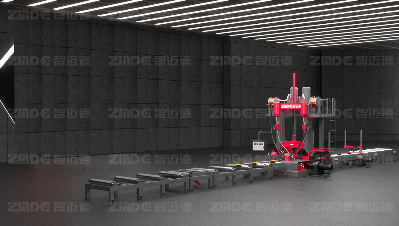 這臺設備就是智邁德研發生產的裝配式H/T型建筑鋼梁組焊矯一體機。