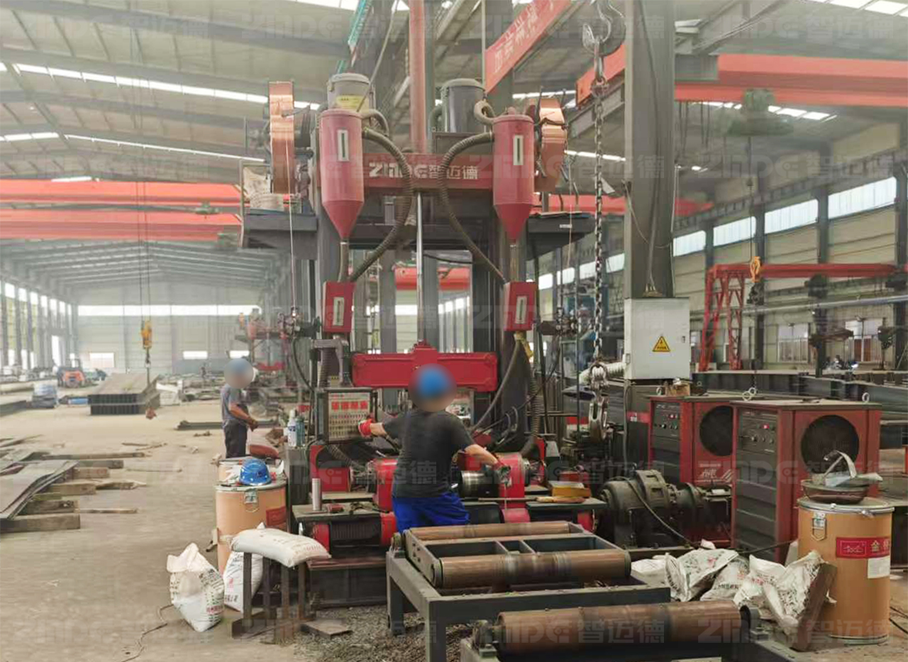 組焊矯一體機的核心優勢,在于以高度集成化實現對鋼結構生產流程的重構,這并非簡單的功能疊加,而是創新性地將組立、焊接、矯正三道鋼結構生產的關鍵工序,集成在一臺設備上,通過精密、集成的設計和智能化控制系統,能夠實現整個過程的自動化、智能化生產。該設備僅需1~2人即可完成操作,可自動對中,無需點焊,腹板18mm以下免坡口焊接,采用熱焊熱矯工藝,從頭焊到尾,提高了生產效率,提升了鋼構件的加工精度和品質。與此同時,可選配智邁德“絕影”三極三弧焊機,大幅提升焊接效率,或選配智邁德“烏騅”六極六弧焊機的組焊矯一體機,實現厚板的焊接。